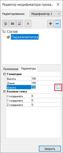 Чтобы параметры балки привязались в модификаторе к параллелепипеду, выбираем значок рядом с любым из необходимых параметров (рис. 36) и открываем Мастер функций.