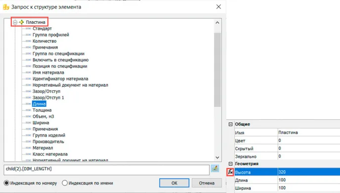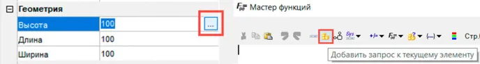 Затем переходим к параметризации параллелепипеда: Геометрия - Высота - вызываем Мастер функций - выполняем запрос к пластине через кнопку Добавить запрос к текущему элементу (рис. 26). В папке Пластины выбираем нужный параметр Длина, нажимаем ОК.