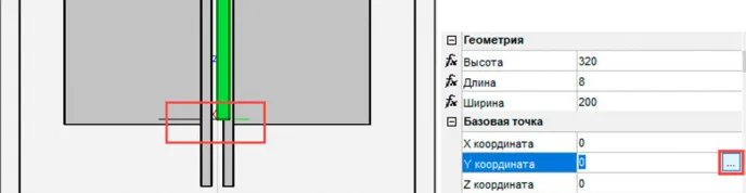 Анализируем размещение пластины в узле и видим, что пластину необходимо сместить на ½ ее толщины. Для этого устанавливаем соответствующие координаты (в нашем случае – координату Y в группе Базовая точка) – (рис. 30). Вызываем Мастер функций.