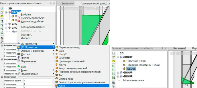 Далее его можно открыть в Редакторе параметрического объекта и перейти к моделированию, добавляя 3D-примитивы и параметры в свойства объекта (рис. 2).