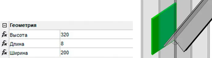 Далее связываем геометрию объекта и расположение базовой точки с параметрами из свойств узла и переименовываем объект в Фаску. Через Запрос к текущему элементу Высота и Длина будут равны значению параметра Зазор/Отступ в пластине – со следующей формулой: child(2).[DIM_GAP].