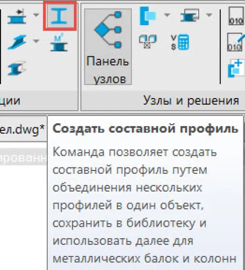 Находим наш составной профиль в Базе элементов. Чертим его в модели – длиной, допустим, 1 м.