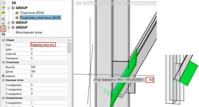 Развернем BOX подрезки на -900 вокруг оси Z и переименуем его в Подрезка пластины (рис. 37).