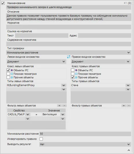 Как мы видим на этом примере, в проверке минимального расстояния необходимо, кроме прочих стандартных данных, заполнить информацию по минимальному расстоянию в миллиметрах. Следовательно, в ряде проверок присутствуют дополнительные обязательные к заполнению атрибуты, характерные для соответствующих проверок.