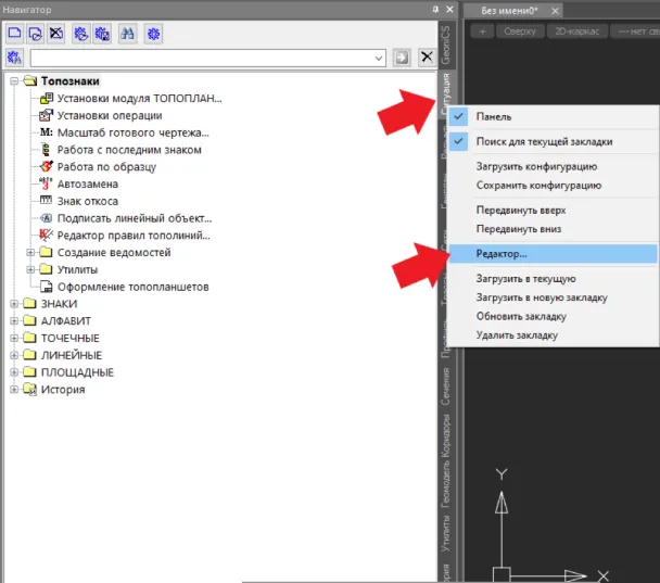 Теперь, найдя УТЗ и просмотрев их обширную библиотеку, если мы обнаружим, что необходимого нам знака нет – мы можем его добавить. Для этого перейдем в Редактор геодерева, нажав правой кнопкой мыши (ПКМ) на закладку навигатора Ситуация и в открывшимся окне выбрав Редактор... (рис. 2).