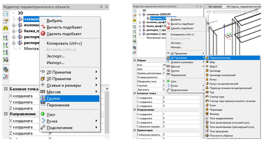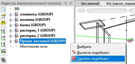 В Редакторе параметрического объекта формируется структура с группами (рис. 9).