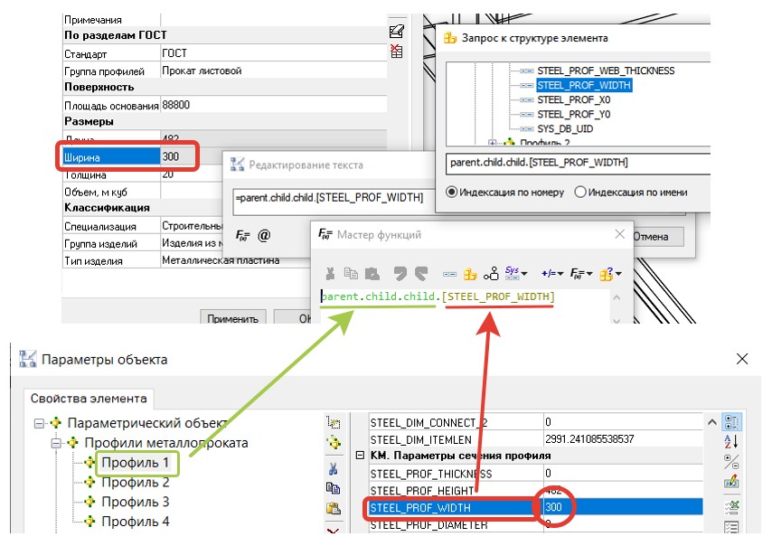 Рис. 18. Параметризация ширины пластины в свойствах параметрического объекта