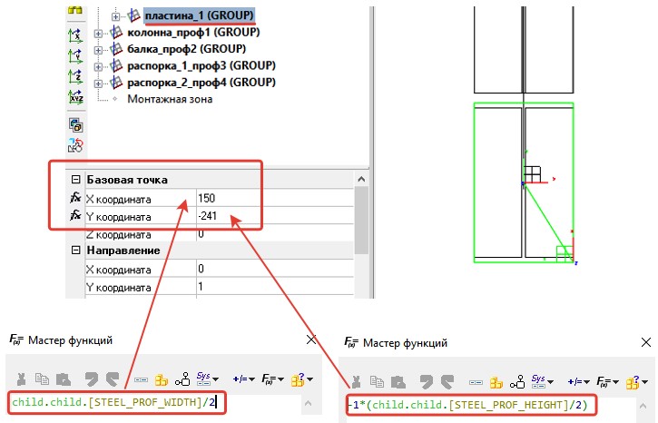 Пространственно-геометрическое позиционирование пластины – это определение координат Х, Y, Z базовой точки, направления и ориентации элемента, выполняемое в Редакторе параметрического объекта (рис. 24).