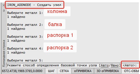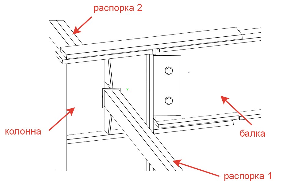 Основные элементы проектного узла – колонна, балка, распорка 1 и распорка 2 (рис. 3). Важно учитывать последовательность элементов.