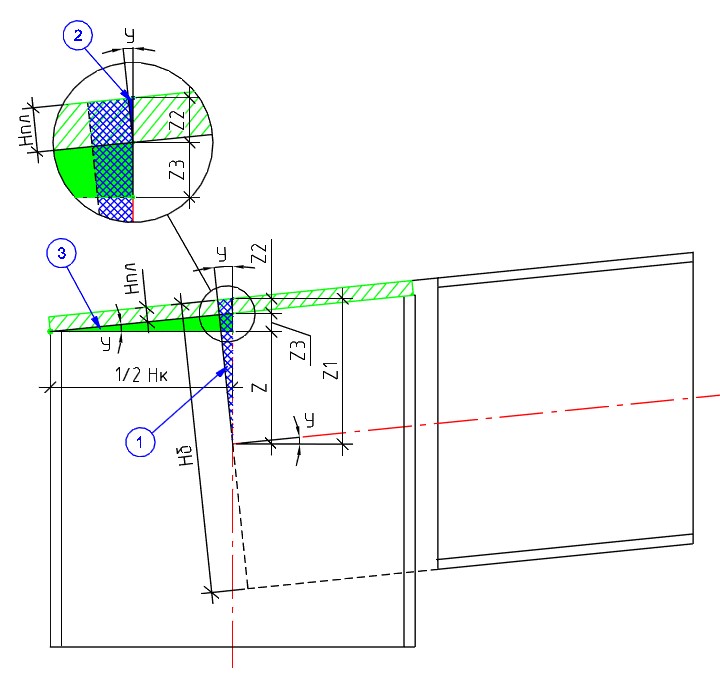 Z3 равно половине сечения колонны, умноженной на тангенс проектного угла: