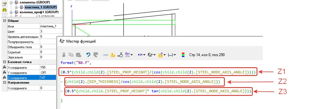 Рис. 31. Параметризация координат Z в Редакторе параметрического объекта