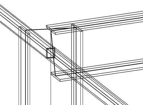 - точка привязки профиля колонны по центру сечения, точка привязки профиля балки по середине верхней полки, точка привязки профиля распорок по середине верха сечения;