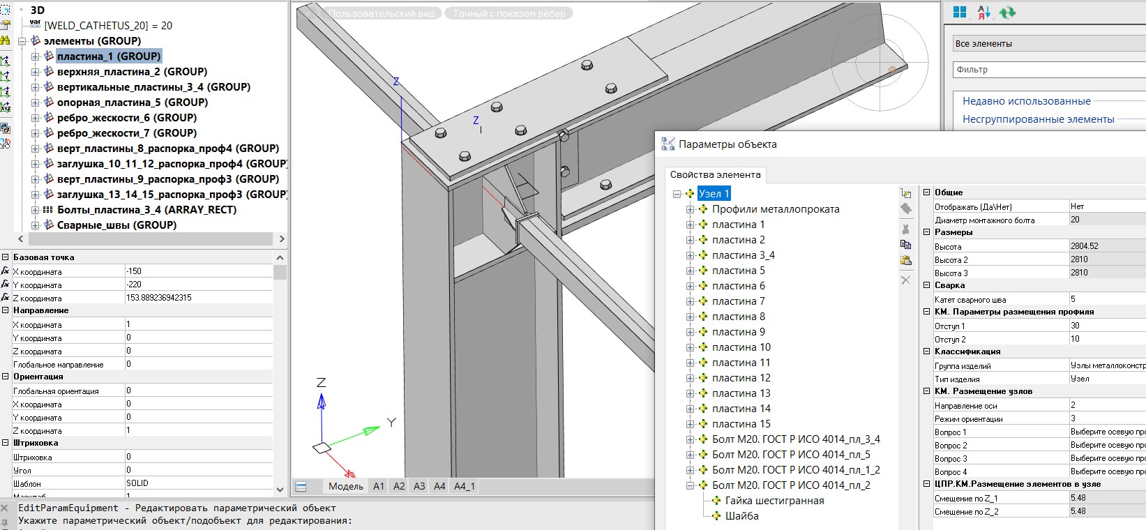 Представленный алгоритм – это личный опыт создания параметрических узлов в nanoCAD BIM Конструкции 22. На мой взгляд, использование этого алгоритма, особенно на начальном этапе работы с программой, намного упрощает процесс создания параметрических узлов.