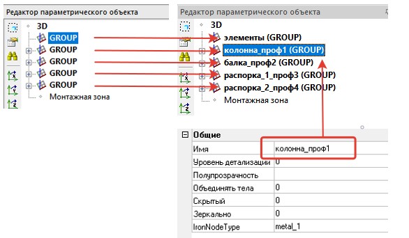 Рис. 9. Структура групп в Редакторе параметрического объекта