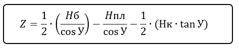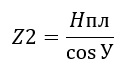 Z2 равно высоте (толщине) пластины, деленной на косинус проектного угла: