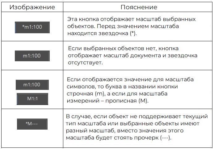Основным средством задания масштаба является кнопка, расположенная в правой части строки состояния.