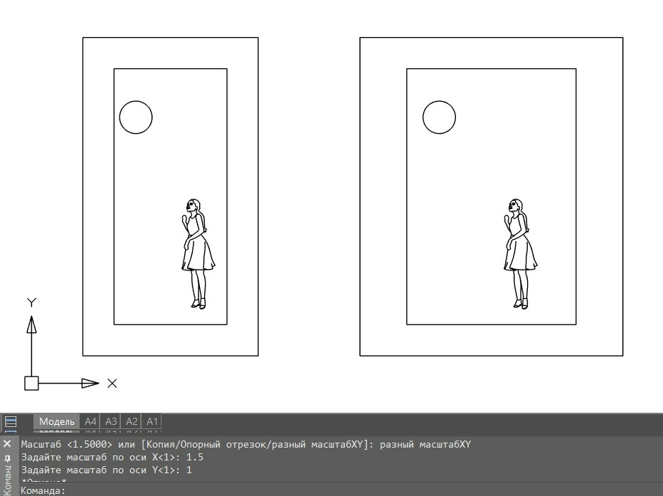 Команда МШ или МАСШТАБ предназначена для увеличения или уменьшения выбранных объектов. Опции команды позволяют как масштабировать объекты с сохранением пропорций, так и назначать различные масштабные коэффициенты по осям X и Y (рис. 4).