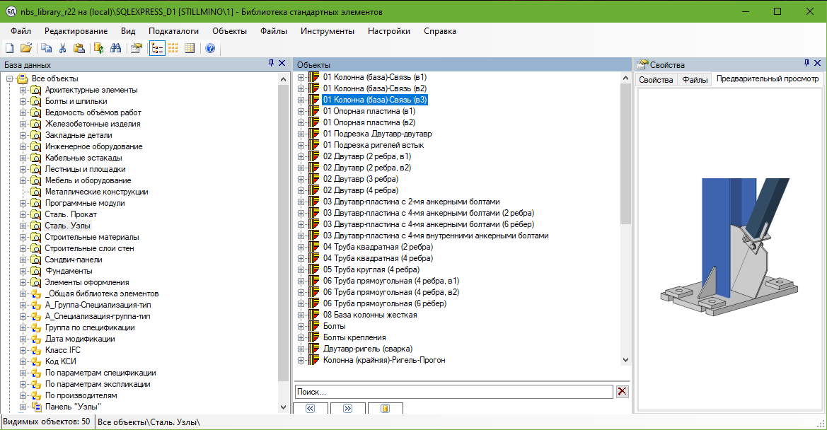 У искушенного и опытного САПР-специалиста может, конечно, возникнуть вопрос о реализации механизма наполнения баз данных. И здесь nanoCAD BIM Конструкции вновь приятно удивят. В дополнение к существующей базе данных из более чем 13 000 элементов (!) можно скачать из Сети любой подходящий элемент и конвертировать его в формат nanoCAD BIM Конструкции (при этом нужно обращать внимание на форматы загружаемых файлов). А если вы относитесь к тем, кто любит или кого обязывают своими руками наполнять базу суперпараметрическими объектами, то и для вашего случая в программе nanoCAD BIM Конструкции существует свой инструмент моделирования. После тщательного изучения он открывает поистине новый мир поведения объекта с гибкой, практически ничем не ограниченной настройкой. Используя Редактор параметрических объектов в связке с Мастером функций, можно создавать категории, добавлять параметры, связывать геометрию и различные параметры между собой на разном уровне иерархии объекта.