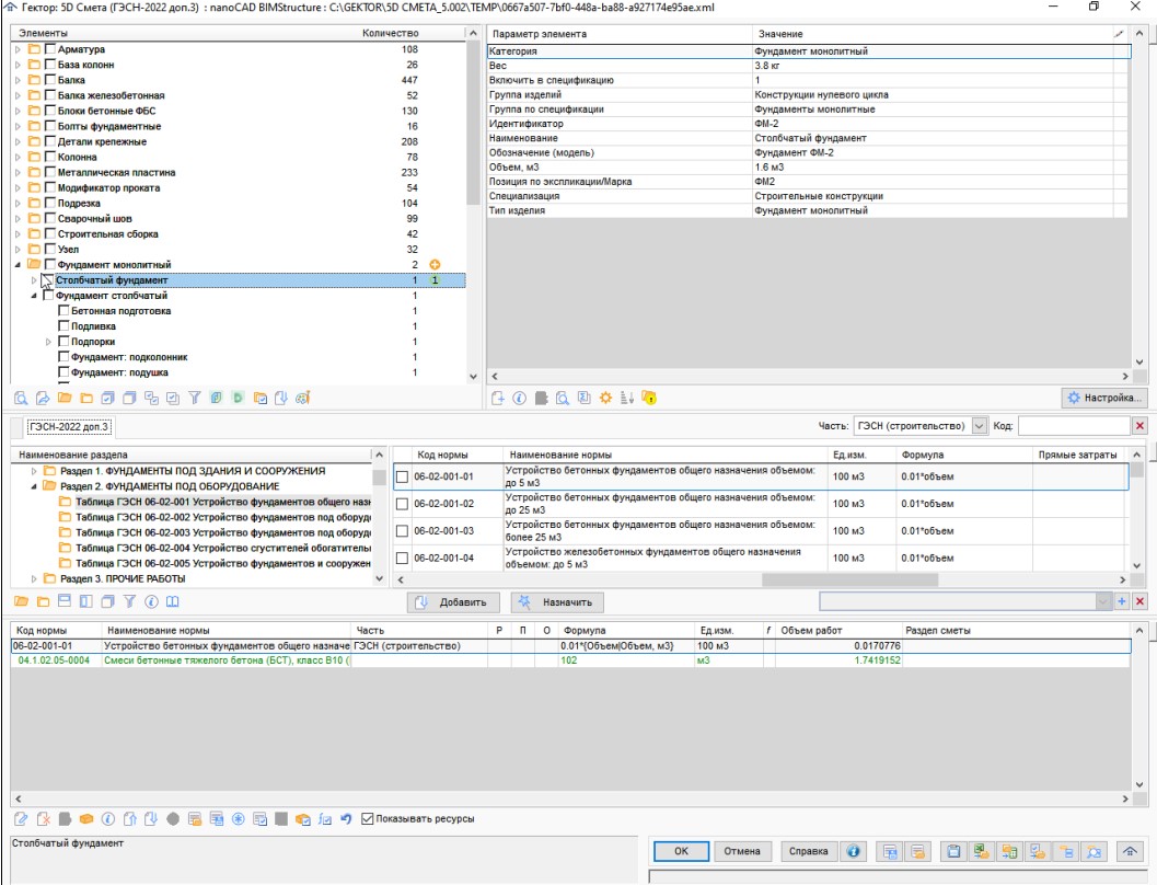 Выгрузка сметы из проекта, выполненного средствами программы nanoCAD BIM Конструкции, в «Гектор: 5D Смета»