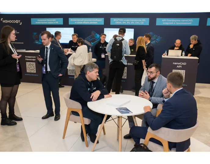 Параллельно с деловой программой форума работала выставка проектов и технологий, где специалисты «Нанософт», а также премьер- и фокус-партнеры «Нанософт» – «АйДиТи», «Бюро САПР», «Инжиниринговый центр “Инфарс“», «Макссофт-24», «Нормасофт», «НТПЦ», «Системный софт», «СИЭС групп», «СиСофт Омск», «ТиБиЭс», ГК «Softline» – демонстрировали решения прикладных инженерных задач в САПР и ТИМ на Платформе nanoCAD и отвечали на вопросы пользователей.