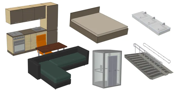 - В раздел «Архитектура и дизайн» включены:параметрические объекты мебели (диваны, кровати, кресла, кушетка, угловые диваны, офисные столы и кресла); параметрические объекты для проектирования кухонь (навесные шкафы различных типов).