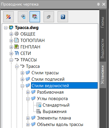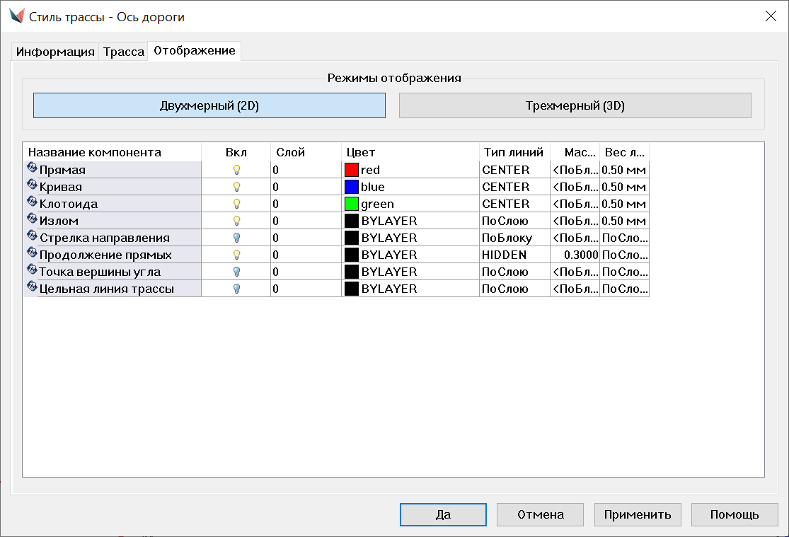 Стиль трассы определяет вид элементов трассы на чертеже: видимость компонентов, их цвет, тип, толщину. В ходе работы над проектом пользователь может, применяя эту настройку, менять стили отображения трассы (рис. 6).