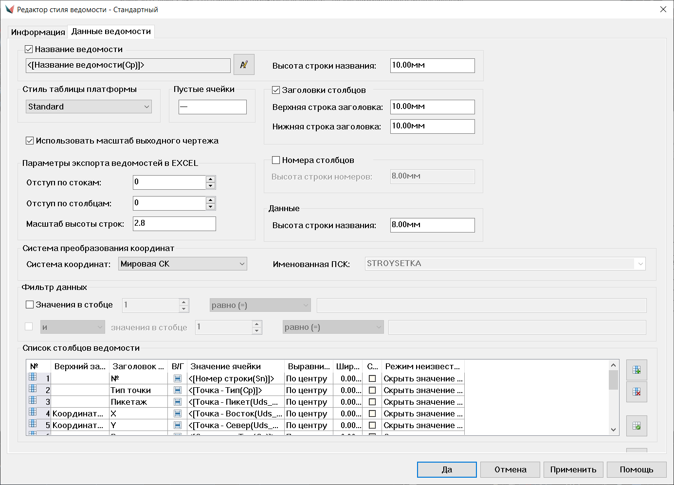 Кроме того, в nanoCAD GeoniCS, применяя настроенные стили, можно создавать и настраивать пользовательские ведомости (рис. 12-14).