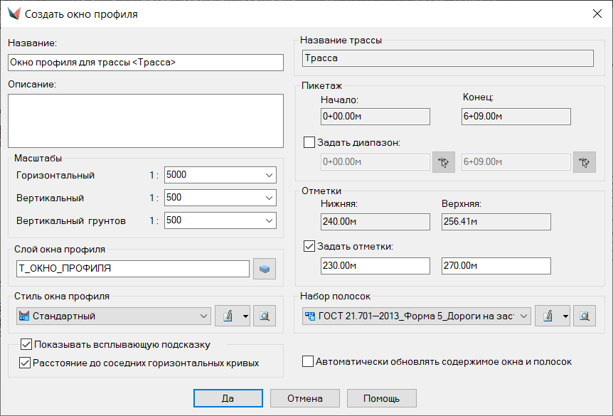 Например, используя ранее созданную поверхность и трассу, можно буквально за секунды построить по поверхности существующего рельефа профиль, который впоследствии будет динамически обновляться с изменением трассы.