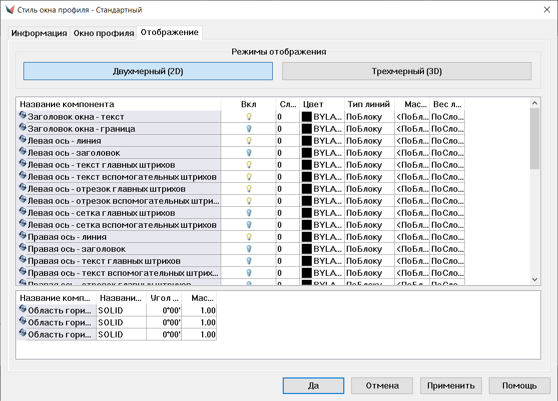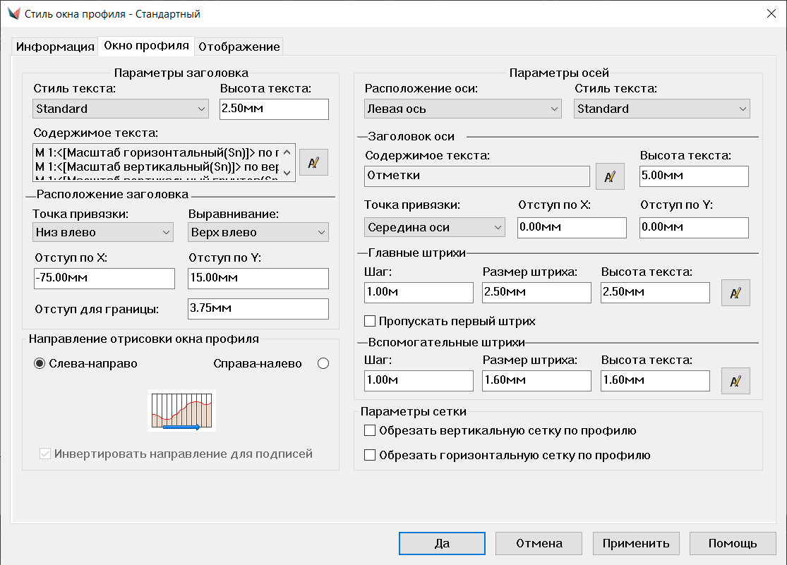 Стили окна профиля используются для управления форматом графического отображения профиля, а также заголовком профиля и подписями координатных осей (рис. 16).