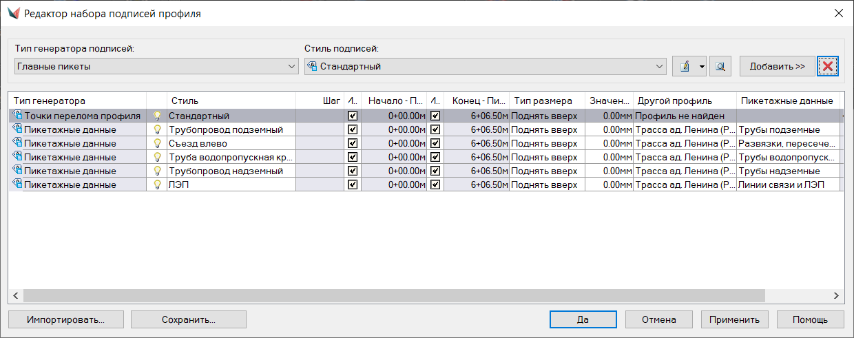 Стили подписей профиля – мощный механизм управления видом и поведением подписей. С помощью подписей можно отображать пикетажные данные на профиле – например, пересекающие коммуникации (рис. 17).