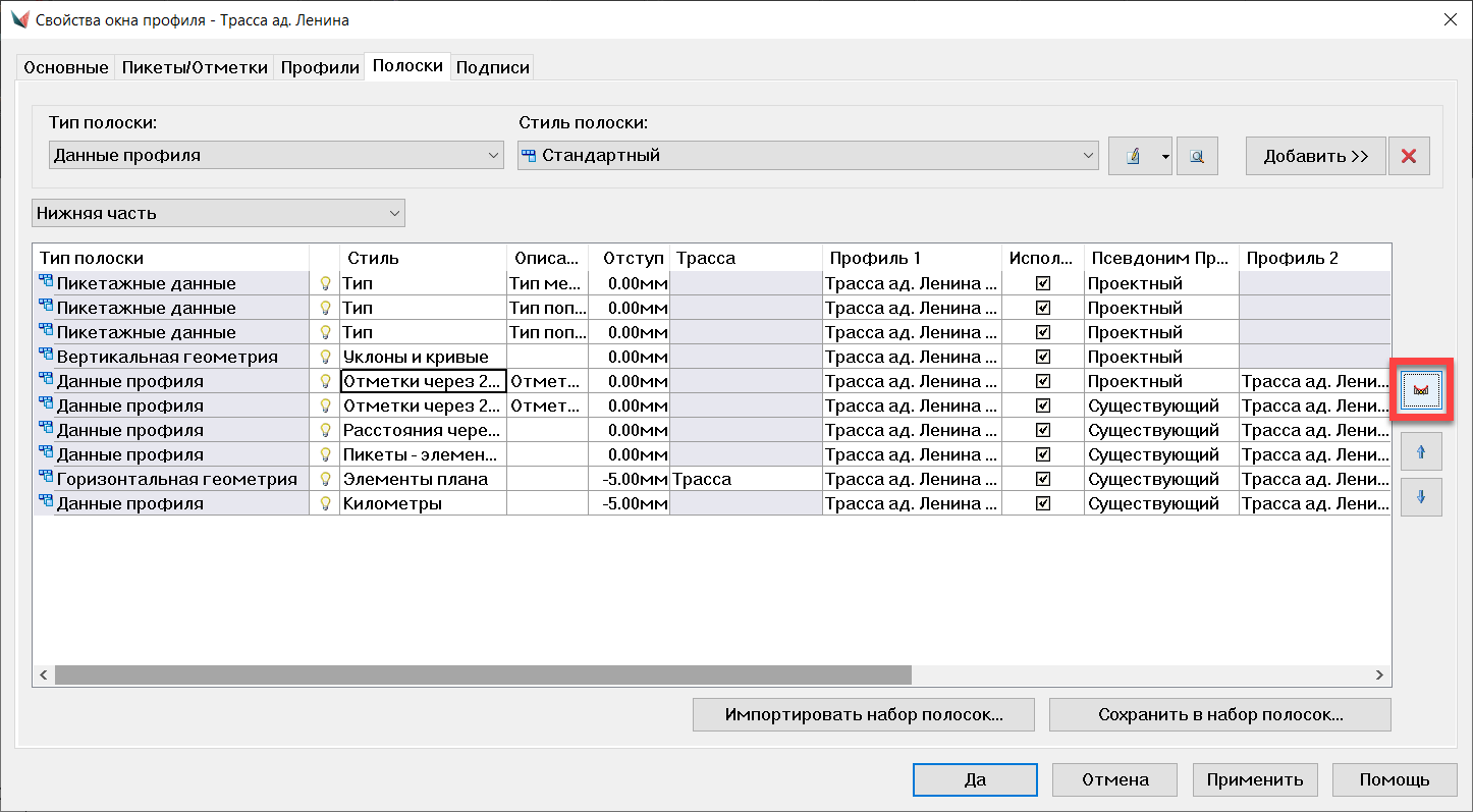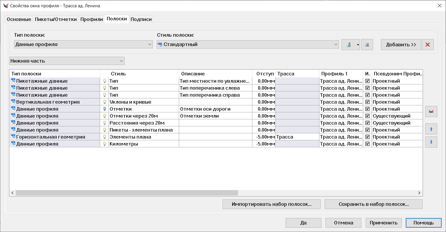 В процессе создания продольного профиля и дальнейшей работы с ним пользователь nanoCAD GeoniCS имеет возможность управлять стилями окна профиля, стилями профиля и его подписями, а также наборами полосок окна профиля (рис. 15).