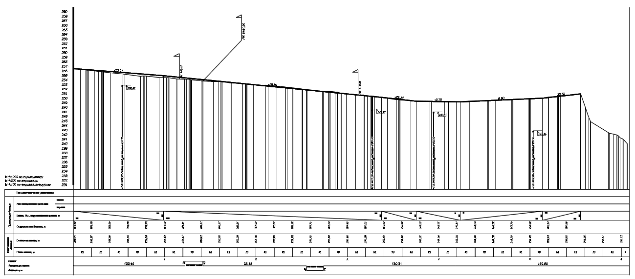 Рис. 20. Пример оформления продольного профиля автомобильной дороги