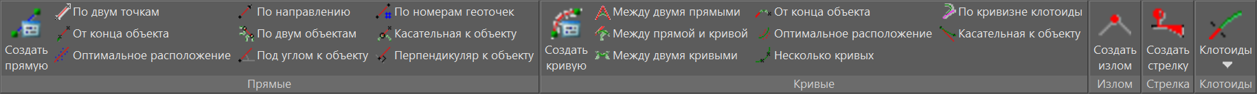 В геометрический конструктор (рис. 4) входят средства построения различными способами прямых, кривых, переходных кривых (клотоид).