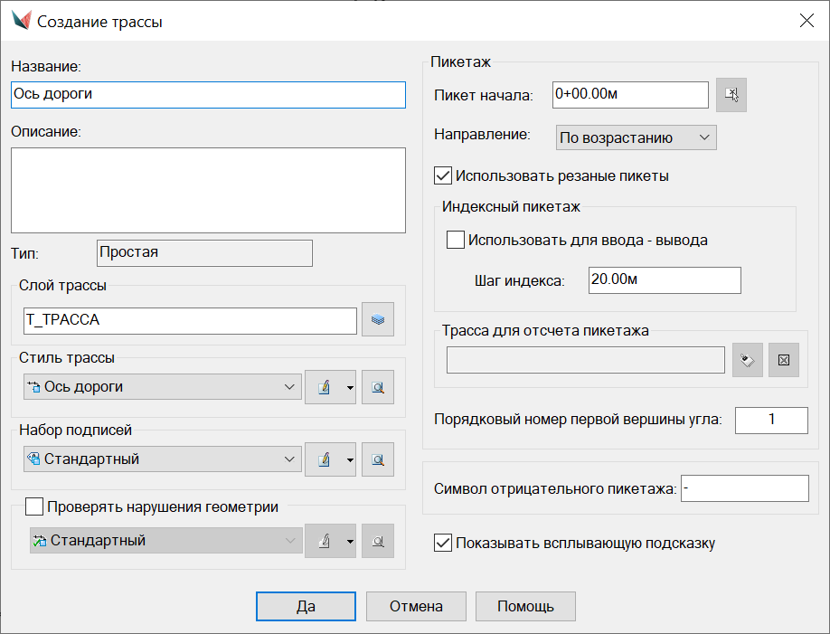 В диалоговом окне (рис. 5) обязательно следует ввести название трассы.