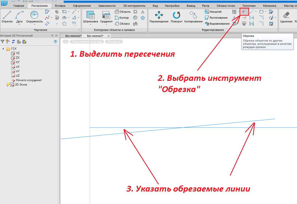 Выделяем пересечения, после чего выбираем Построение → Обрезка и указываем на обрезаемые линии (рис. 14).