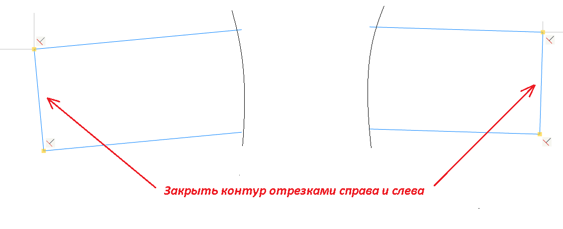 Далее нужно закрыть открытые зоны контура – справа и слева (рис. 16).