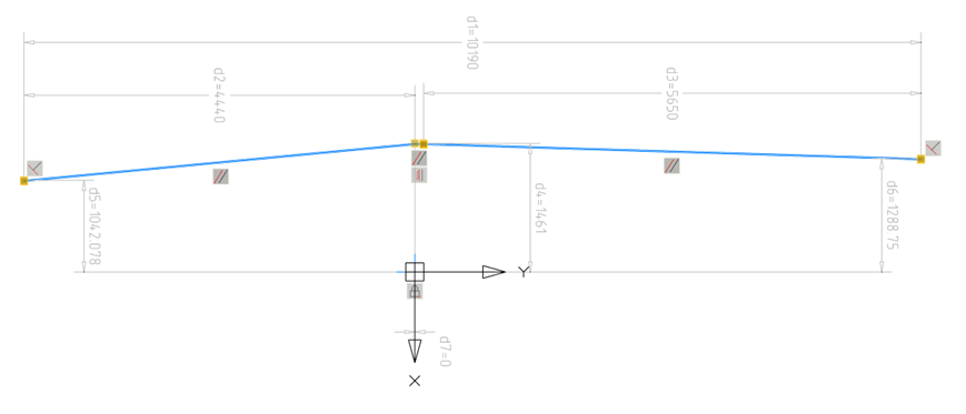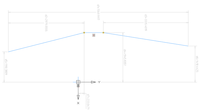 Размеры выставлены, но еще не отредактированы. Горизонтальный размер d7 = 233.0471, показанный на рис. 8, можно сразу выставить в 0. Остальные размеры задаем в соответствии с параметрами, которые представлены на рис. 2.