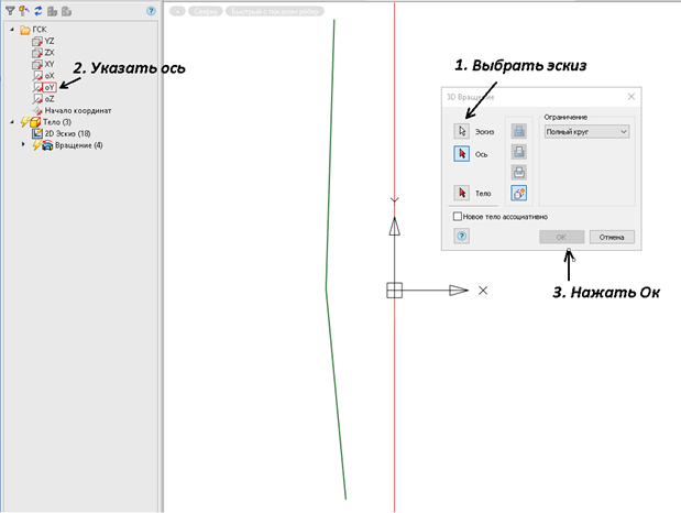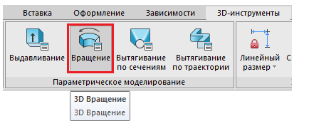 Не выходя из эскиза, выбираем 3D-инструменты → Вращение (рис. 18).