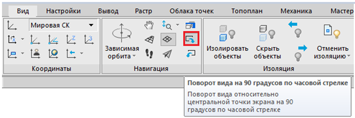 Для удобства работы с эскизом его вид можно повернуть в горизонтальное положение. Выбираем Вид → Поворот на 90° по часовой стрелке (здесь и далее операции выполняются в ленточном интерфейсе) – рис. 3.