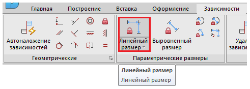 Выбираем Зависимости → Линейный размер (рис. 7).