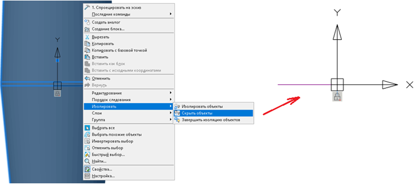 Рис. 22. Скрытие объекта