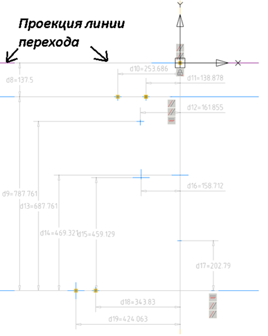 Рис. 21. Проецирование линии перехода