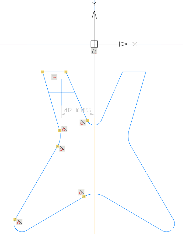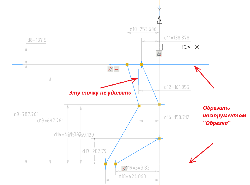 Примечание. После удаления точек зависимости должны сохраниться. В противном случае к эскизу следует применить автоналожение зависимостей.