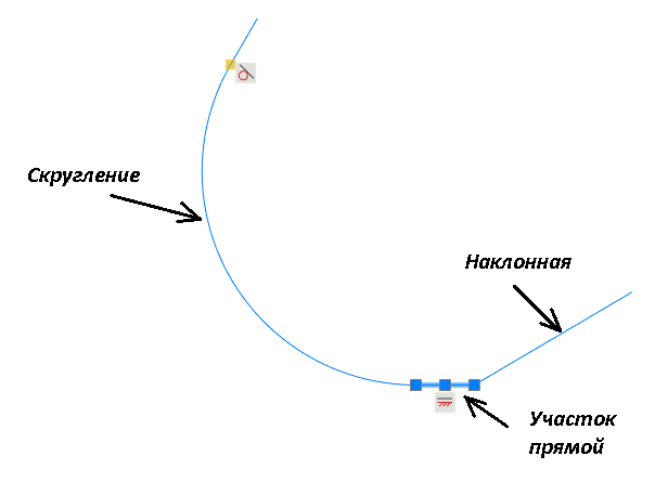 На рис. 36 виден участок прямой, который образовался в результате сопряжения. Этот участок нужно удалить, а линию скругления продлить до касания с наклонной линией.