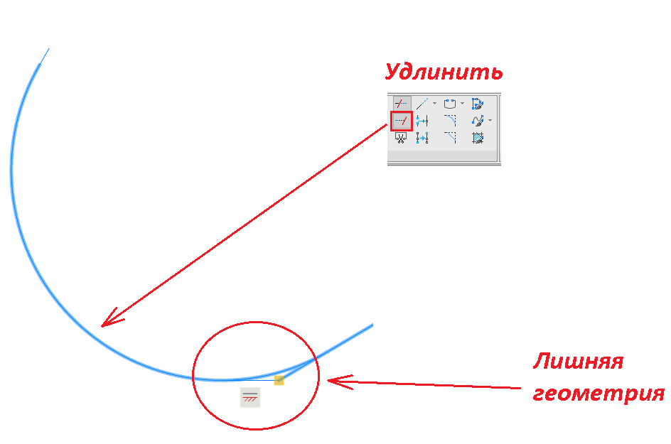Рис. 37. Удлинение линии окружности