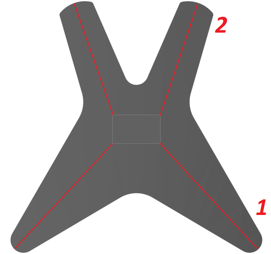 Вспомогательная геометрия будет строиться на плоскостях, которые проходят через линии симметрии лучей (на рис. 56 – линии красного цвета). Самое простое решение – построить плоскость по двум осевым линиям.