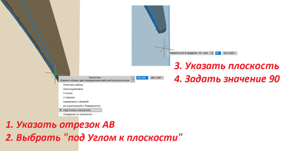 Рис. 71. Создание плоскости под углом 90°