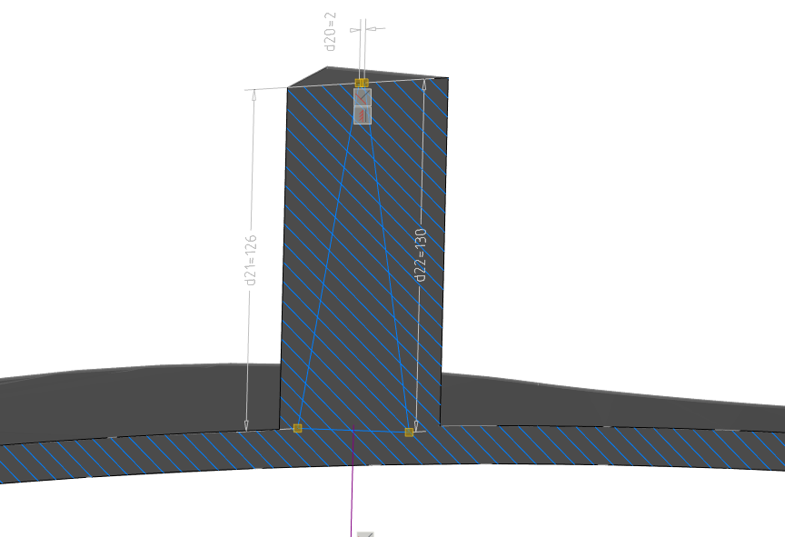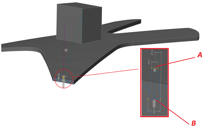 Переходим, пожалуй, к самой сложной части нашей работы: построению ребер. Основная ее сложность заключается в правильном построении эскизов. В nanoCAD нет понятия вспомогательной геометрии, которая участвует в построении, но при этом является референсной – и в качестве такой геометрии зачастую используются те же объекты построения, из которых создаются эскизы: объекты типа «Отрезок», «Окружность», «Точка» и проекции элементов. Эскизы будут привязаны к линиям проекций, но в процессе формирования эскизов какие-то линии понадобится удалить, чтобы они не мешали построению, а какие-то оставить.