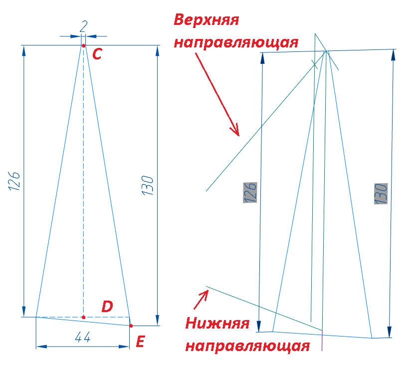 Построение нижней направляющей