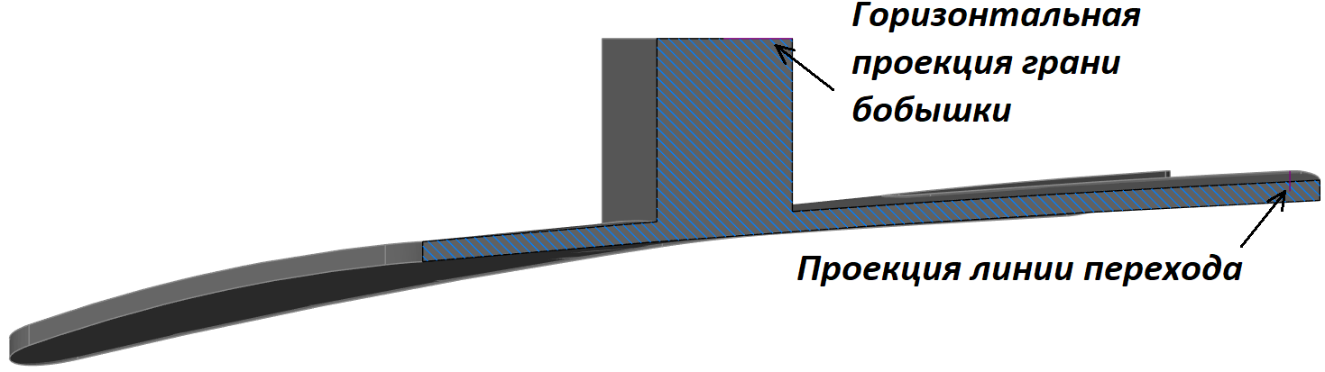 Далее на пересечении вертикальной грани бобышки и верхней направляющей строим точку F.
